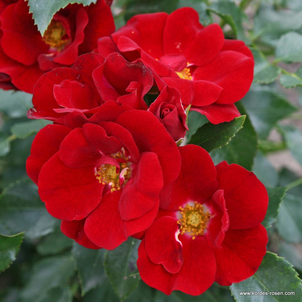 Madalakasvuline, tugev ja laiuv põõsas leekivpunaste (velvetpunaste) õitega. Lehed väiksemad, tumerohelised ja läikivad, väga hea tervisega roos. Kollase südamikuga lihtõied peavad vihmale väga hästi vastu, roos on korduvalt ja rikkalikult õitsev. Sobib hästi massistutusse nii pinnakatteks kui ka peenarde ääristuseks.