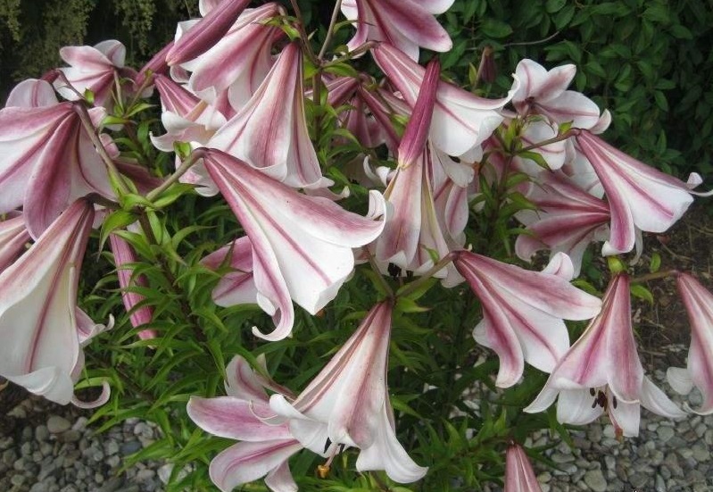 Pikaõieline trompetliilia sort. Võimsatele pikkadele vartele ilmuvad suured (kuni 20 cm) valged, õrna roosa varjundiga õied. Kroonlehed on väljapoole kaardus, südamiku ümbritsev osa on kergelt kollane, tolmukad väljendusrikkalt suured. Sibul 20cm +.