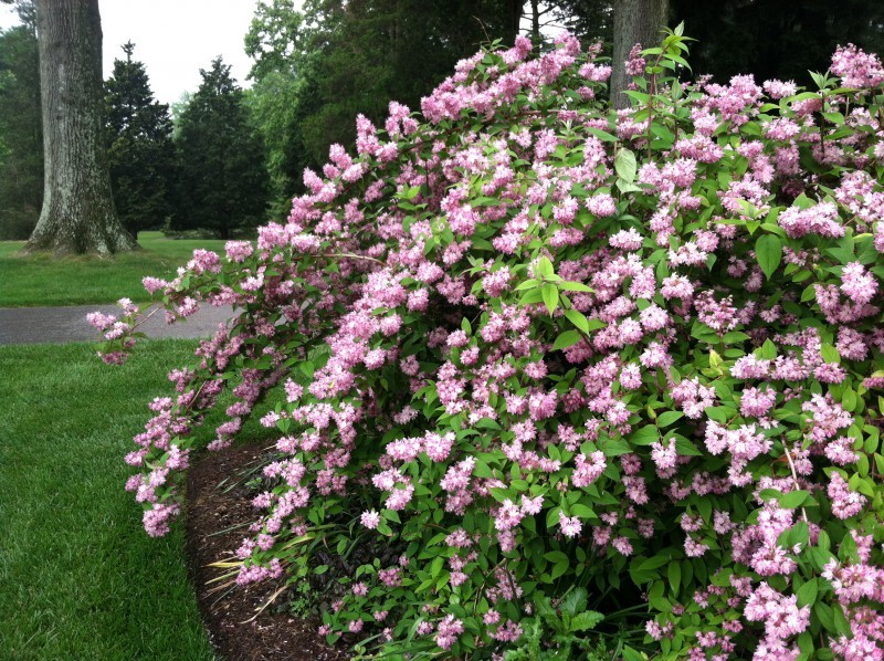 Pikalt aretatud suurepärane deutsia sort. Kaunid, õrnalt roosad kirsiõietaolised nupud tärkavad hiliskevadel ja õitsevad kogu hooaja vältel. Põõsas on kompaktne, madal ja tihe. Suurepärane valik roheliste püsikute peenrasse, teede ääristuseks kui ka kiviktaimlasse. Sügisel muutuvad väikese põõsa lehed purpurseks, lisades huvitava nüansi rohelusse. Õitseb eelmise aasta võrsetel. Vormipügamist eriti ei vaja.