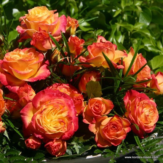 See floribunda on oma värvikülluse ja väga terve lehestikuga tõeline tähelepanu ärataja. Kõrge keskpunktiga pungad avanevad väga kahekordseteks õiekuppideks, mille kollast keskosa ümbritsevad intensiivsed punased servad.