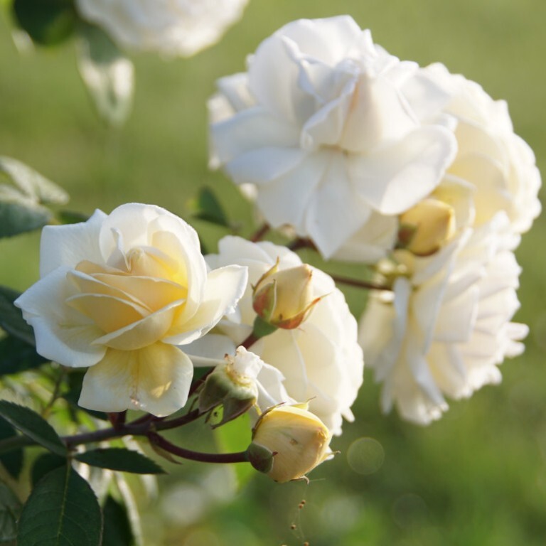 Rikkalikult õitsev roosipõõsas, mis valgustab aeda rikkalikult sügiseni. Meenutavad vana roosi ning moodustavad vaid mõne35-40 kroonlehega õie varre kohta. Selle tume, väga terve lehestik moodustab suurepärase tausta valgete, kergelt kollaselt sillerdavate õite rohkusele. See oli kahtlemata see, mis köitis Manuel Canovast, sisekujundajat ja kangaste ja tapeetide kirjastajat.
