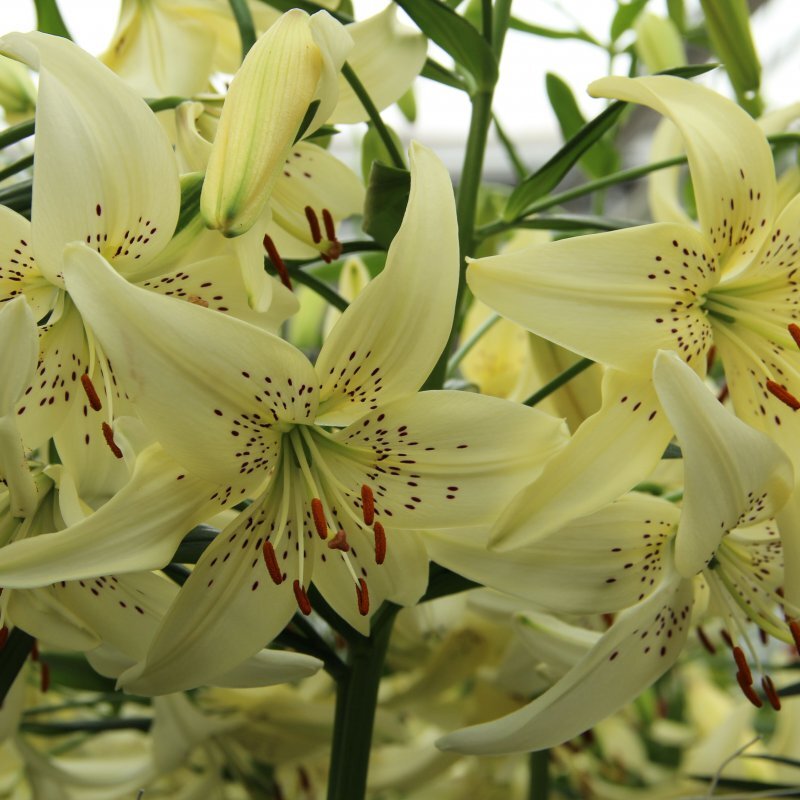 Avanedes on õied kollase kumaga kreemjad, ajapikku muutuvad õied aina valgemaks ning pruunid tähnistused tulevad üha paremini esile. Kroonlehed on kergelt kaardunud.